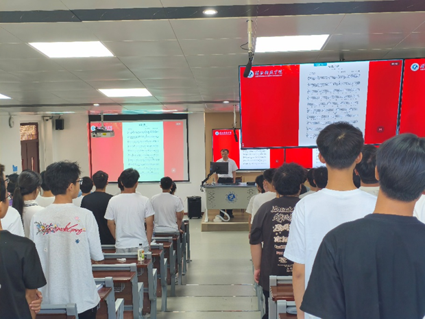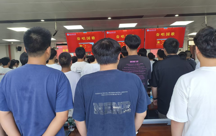 上午 8 时 30 分,典礼在庄严的氛围中拉开帷幕。全体参会人员起立,奏唱中华人民共和国国歌。激昂的旋律回荡在教室,新生们神情肃穆,爱国情怀在心中激荡。