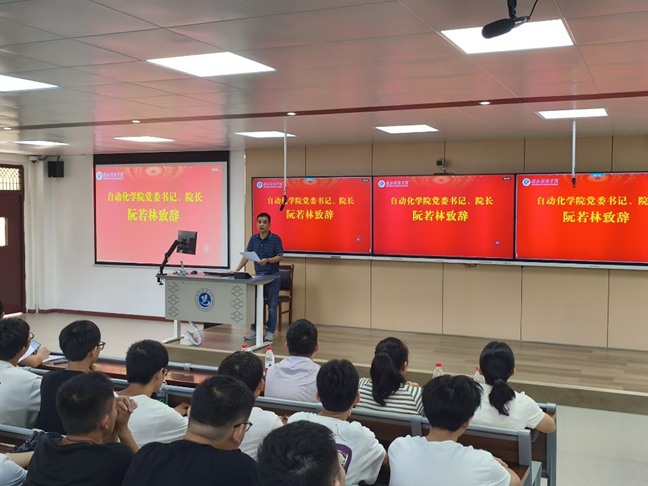 新生代表邹金晶同学发言时,表达了对大学生活的期待与向往。她代表全体新生承诺,将以饱满的热情投入到学习中,严格要求自己,遵守学校规章制度,积极向老师和学长请教,努力成长为有理想、有本领、有担当的自动化人才,不辜负学校与学院的期望。