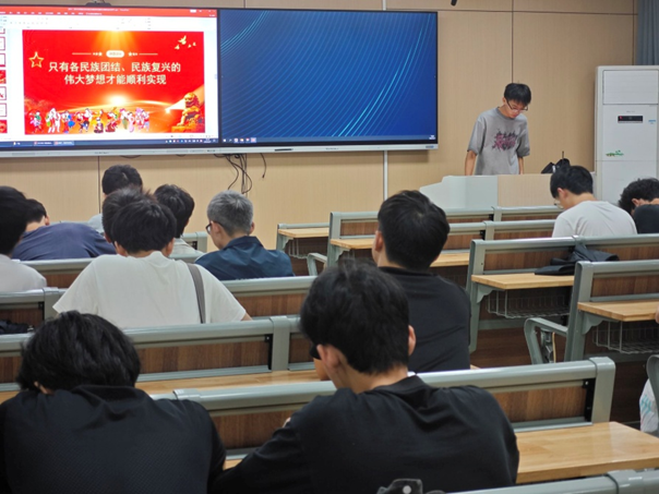班会中,各班负责人以 “我国是统一的多民族国家” 为切入点,结合 PPT 内容,从 “辽阔疆域共同开拓、悠久历史共同书写、灿烂文化共同创造、伟大精神共同培育” 四个维度,阐释中华民族 “多元一体” 历史格局,让同学们明晰民族团结是各族人民的生命线;随后围绕 “实现中华民族伟大复兴关键时期的民族工作” 展开讨论,通过案例分享、政策解读等,强调铸牢中华民族共同体意识是维护各民族根本利益、实现民族复兴、巩固社会主义民族关系、开创民族工作新局面的必然要求,帮助学生理解复杂国内外形势下民族团结的重要性;同时还重点学习了民族工作中需把握的四大关系,即共同性与差异性、中华民族共同体意识与各民族意识、中华文化与各民族文化、物质与精神的辩证统一,助力学生树立正确民族观。
