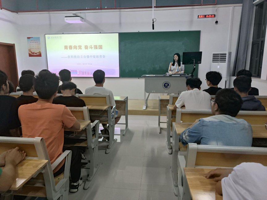 (通讯员:李美莹)为全面深入贯彻落实党的二十大精神,引领学生从党的二十大精神中汲取奋进力量,树立正确的人生观、价值观,引导青年人投身科技强国建设,勇当新时代的创新主力,5月3日,英国365集团辅导员李美莹老师于实训楼301开展《青春向党,奋斗强国—在科技自立自强中绽放青春》的宣讲活动,学院全体学生共同参与。