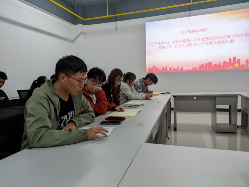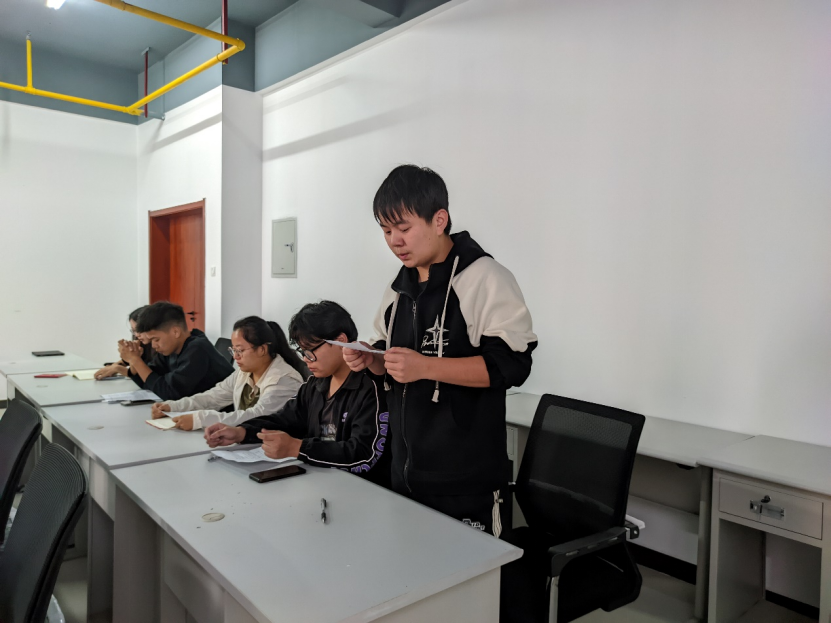 “党旗飘飘引方向,头雁领航谱新篇”主题党日活动中,学生和老师接龙式诵读党章,让声音凝聚力量,澎湃起所有人的心潮。“我骄傲,我是中国共产党人!”随后进行的是由预备党员谈学习新思想的感悟交流分享会。来自20机械的王浩同学在他的经验分享中提到:“学生干部应当增强服务意识,克服官僚主义,为有需要的同学提供帮助。注重个人素质,带动他人素质。”陈越同学说:“我们必须时刻牢记从严治党,加强党的领导和推动党的事业,加强基层党组织的保垒作用,加强个人能力锻炼。”通过领学学生的经验分享,让在座的学生领悟到了武装自我精神的重要性和长期性,学生们表示将会在未来的学习中提高质量,以学习作为跳板拓宽视野。熊同强老师对以上同学的领学表示了肯定与表扬,并希望各位同学在学习感悟新思想的时候能够一心一意、精益求精,学习新思想,争做新青年。