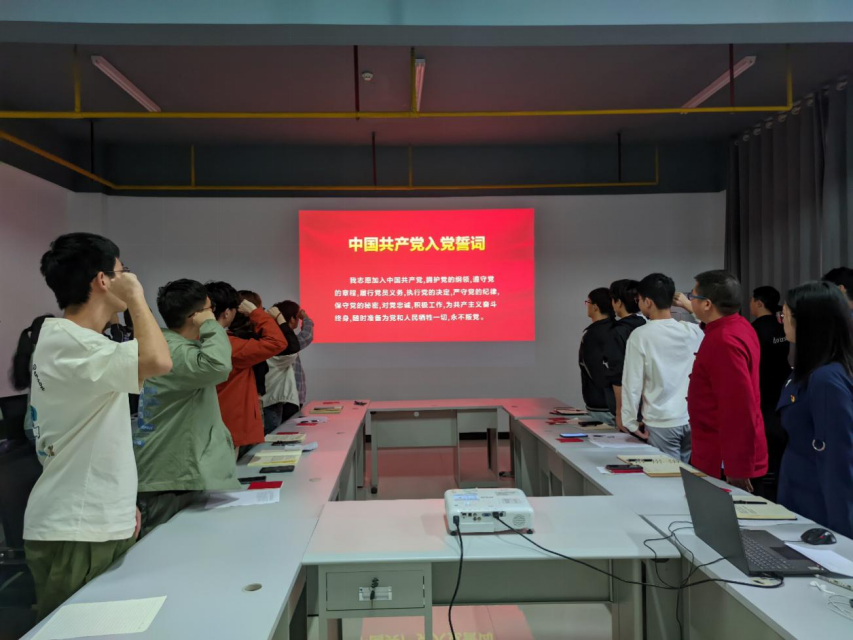 此次活动的尾声,是党员带领预备党员进行入党宣誓环节。面对鲜红的党旗,党员们庄严地举起右手,老党员重温入党时的初心和使命,新党员深化自我政治意识为成为正式党员埋下一颗拥有蓬勃力的种子。此次活动不仅让广大党员群众感受到了党的光辉历程,也增强了大家的爱国爱党情怀。更让与会的积极分子有更强的动力向着成为一名优秀的共产党员的目标前进。相信在未来的日子里,英国365集团党支部将继续发挥党组织的战斗堡垒作用和共产党员的先锋模范作用,为实现英国365集团发展做出新的更大贡献。