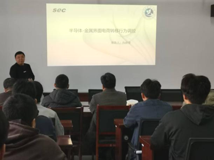 耿辉辉老师首先以《基于脉冲强磁场的先进制造工艺》为题进行报告,系统介绍了电磁制造的基本原理,重点阐述了脉冲强磁场在塑性加工领域中的创新应用,包括电磁焊接、电磁强化等新型工艺。他的研究为高效、精密的先进制造技术提供了新思路,其扎实的学术背景和清晰的讲解赢得了师生的关注。随后,向后奎老师作了题为《半导体-金属界面电荷转移与调控》的学术分享。向老师聚焦半导体光电化学方向,详细介绍了一种采用双通道开路电路监测的原位光电化学表征方法,可助力提升光催化剂的光能利用效率。他在相关领域已发表多篇高水平论文并获授权多项专利,其研究成果具有较强的理论价值与应用前景,引发了与会师生的深入思考。